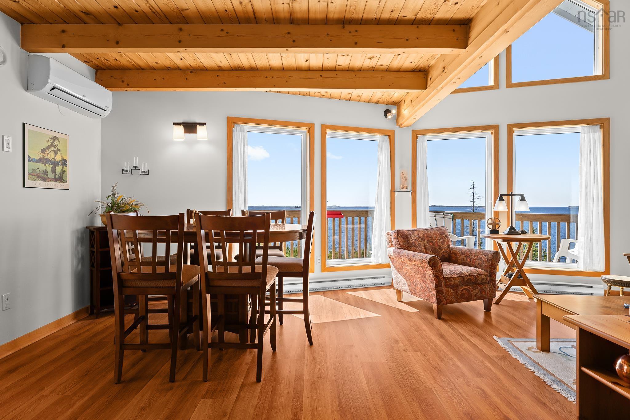 Set on 3.17 acres of private coastline with over 300 feet of direct ocean frontage, this beautifully appointed West Quoddy residence offers a rare combination of refined comfort, natural beauty, and effortless coastal living. With sweeping South-facing views offer a 180 degree panorama across Beaver Harbour and the Harbour Islands, the setting is nothing short of extraordinary, where sunsets become part of your daily routine. Built in 2005 by Interhabs, the home encompasses over 1,500 square feet of thoughtfully designed living space, offering two bedrooms and two full bathrooms. Interiors are warm and inviting, enhanced by abundant natural light through Kohltech windows, notable softwood and hardwood floors on the upper level, exposed pine beams, and tongue-and-groove ceilings that add timeless character and another layer of warmth throughout. Quality wood cabinetry and a functional layout further complement the home’s welcoming design, while the finished lower level provides additional living space and ample storage. Recent improvements include a brand new LG heat pump head, newer refrigerator, and a new propane tank servicing the elegant propane fireplace. Outdoor living is equally compelling, with a covered sunroom and expansive sun deck designed to capture the ever-changing seascape. Offered fully furnished, this is a true turnkey opportunity—equally suited as a sophisticated year-round home or an exceptional coastal retreat. Located just 22 minutes from Sheet Harbour and serviced by Bell fibre-op internet, the property offers both seclusion and modern convenience. Surrounded by the pristine waters and renowned paddling routes of the 100 Wild Islands, it is an ideal haven for those who value privacy, beauty, and outdoor adventure.